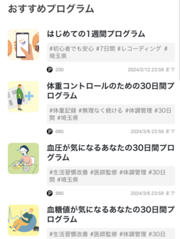 アプリに搭載されたプログラムに参加し、ミッション(体重の記録など)をクリアして設定した目標の達成を目指します。