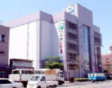市営本町駐車場の写真です。大通りから大きくPの文字が見えます。