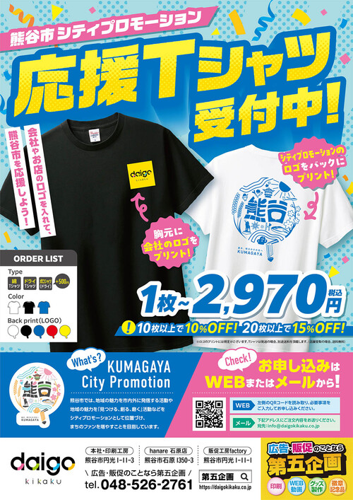 会社やお店、団体やイベントなどでTシャツを作成して熊谷市をPRしませんか。