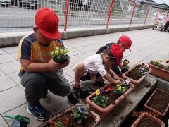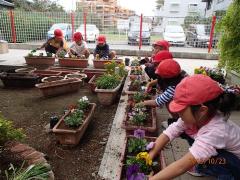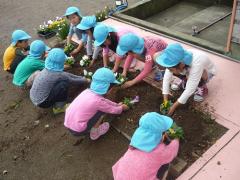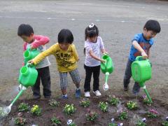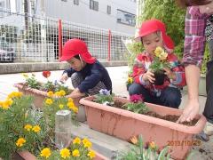 事業(じぎょう)の目的(もくてき):市内(しない)13か所(しょ)の公立保育所(こうりつほいくしょ)に通(かよ)う子(こ)どもたちが、四季(しき)の花(はな)を植(う)え緑化(りょっか)を推進(すいしん)します。併(あわ)せて、子(こ)どもたちが自(みずか)ら植(う)えた花々(はなばな)を育(そだ)て大事(だいじ)にすることで、自然(しぜん)を大切(たいせつ)にする心(こころ)の醸成(じょうせい)を図(はか)ります。
