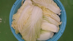ハクサイを塩漬けします。