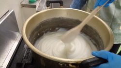 上新粉を煮てとろみをつけます。