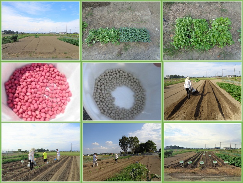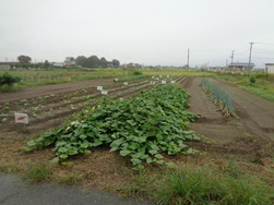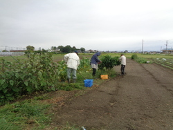 第9回は秋まき作物の教室を開催する予定でしたが、降雨によるほ場のコンディション不良から中止となり、9月上旬に、講師と職員でキャベツ、ハクサイ、ブロッコリーの苗の植え付けと、ニンジン、ダイコンの種まきを行いました。第10回もほ場のコンディションが悪く、参加者はほ場に入れないため、講師が収穫作業と除草作業を行いました。大きなナスとたくさんのピーマンが収穫できました。