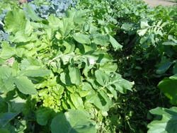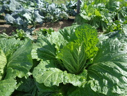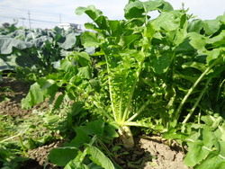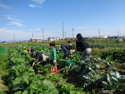 まず、恒例の草取りをしました。雑草で見えなかったニンジンの葉がはっきりと見えるようになり、高さ10センチメートルぐらいまで成長していました。ダイコン、ハクサイ、キャベツ、ブロッコリーは葉や実の膨らみが増し、土が見えないほどに成長していました。