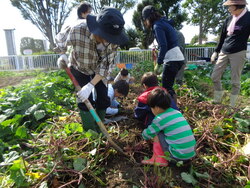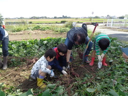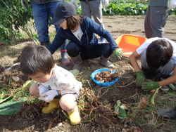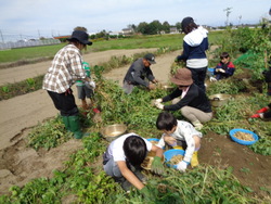 次に、収穫作業を行いました。サツマイモのでき具合は最高とは言えなかったものの、みんなで元気いっぱいにすべて掘り起こしました。