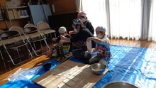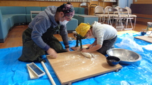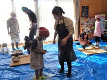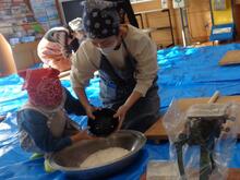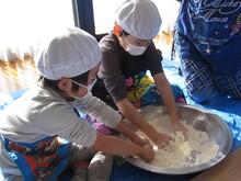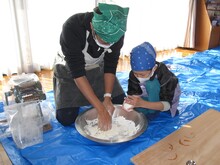 力を合わせてこねています。