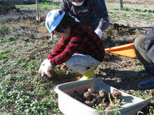 子イモ、孫イモの取り外し中