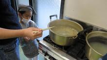 大きな鍋でゆでています。