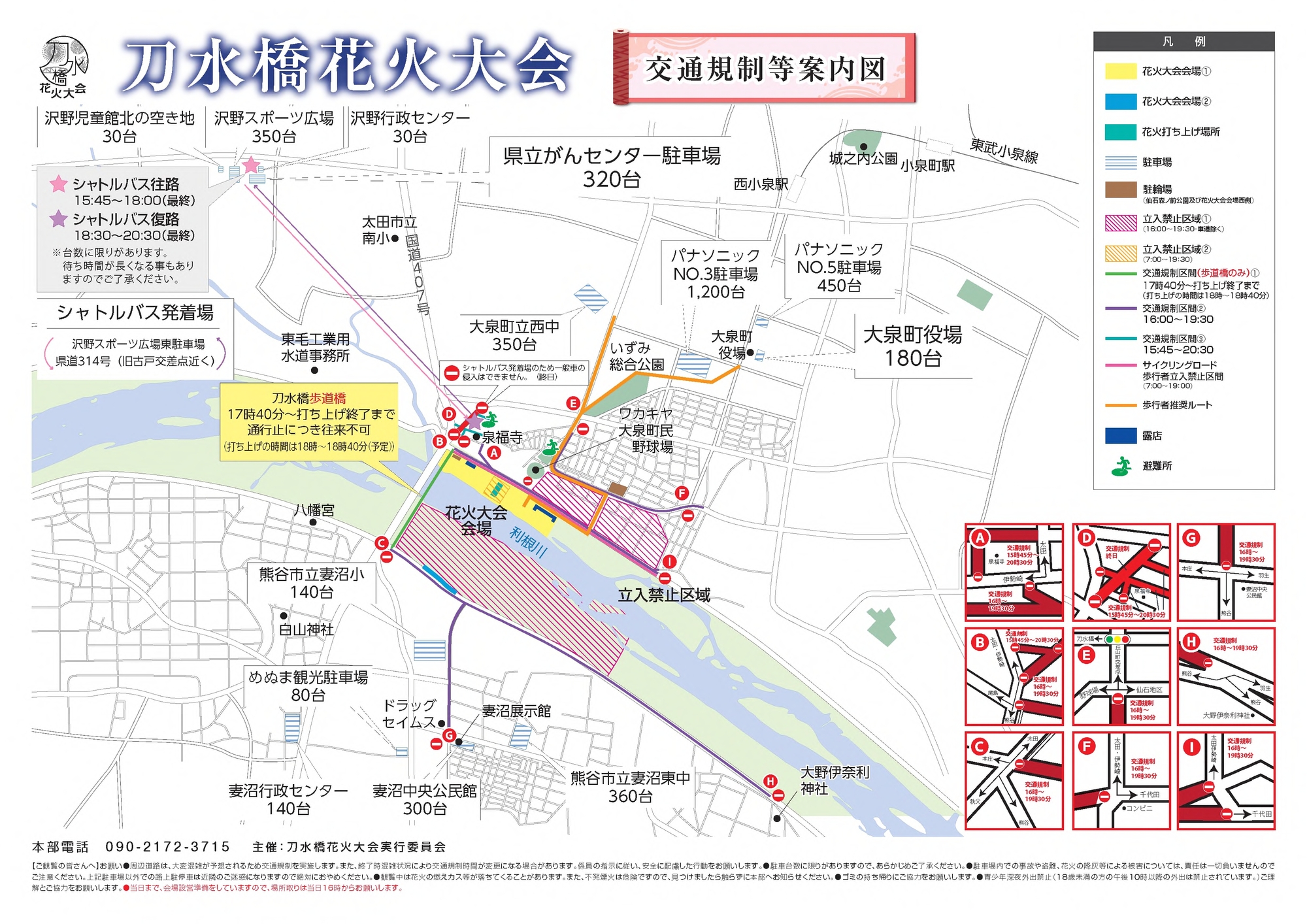 刀水橋花火大会の熊谷市側駐車場空き状況をお知らせします。