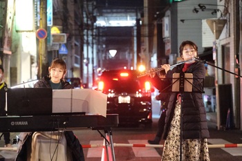 点灯式ではクリスマスミニコンサートが開催され、スペシャルゲストとしてピアノ・フルートデュオ えみゆかのお二人に演奏をしていただきました。