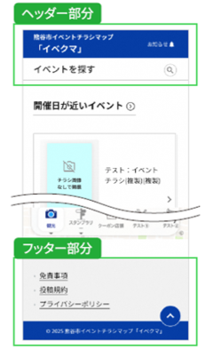 「ヘッダー部分」と「フッター部分」が、各画⾯に共通して表⽰されます。