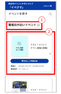 - 開催⽇が近いイベント/よく⾒られているイベント