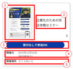 イベントへの参加受付の状況と、参加受付期間が表⽰されます。参加受付が不要なイベントの場合は、表⽰されません。