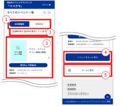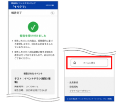 「ホームに戻る」ボタンから「イベントを探す」画⾯に戻ることができます。