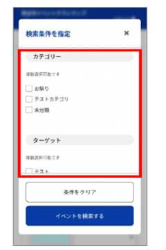 指定した「カテゴリー」と「ターゲット」が登録されているイベントを絞り込みます。