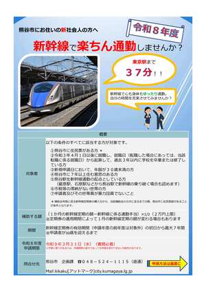 大好き熊谷!新幹線らく賃通勤補助金(令和8年度)