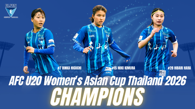 2026年4月1日から18日に行われた AFC U20女子アジアカップタイ2026にて樋口 梨花(ひぐち りんか)選手、木村 未来(きむら みき)選手、原 ひばり(はら ひばり)選手が出場したU-20女子日本代表が優勝しました!