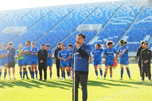イベントでは、小林市長からワイルドナイツの皆さんにシーズン開幕に向けたエールが送られ、市内の小学生がプレゼンターを務めた「花束贈呈キッズ」からワイルドナイツの選手に花束が贈呈されました。