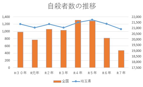 令和7年の自殺による死亡者数は、全国で1万9,024人です。
