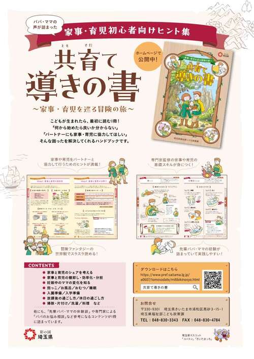埼玉県では家事・育児に関する初心者向けヒント集「共育て導きの書~家事・育児を巡る冒険の旅~」を公開しています。