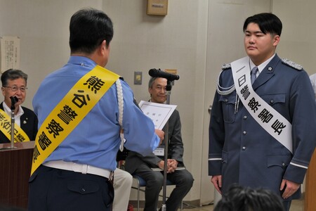 式典では、今年度の自転車マナーアップ推進校である熊谷工業高等学校の生徒を一日警察署長に任命し、交通事故防止のため、交通安全宣言を行いました。