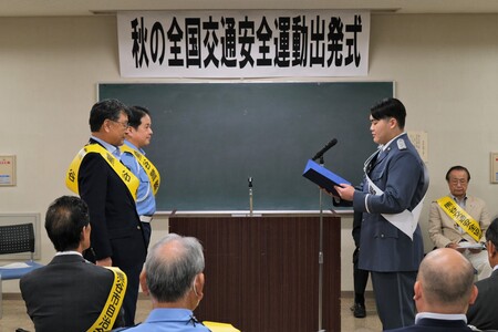 9月22日(月曜日)熊谷市緑化センターにおいて、令和7年秋の全国交通安全運動出発式を開催しました。