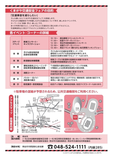 くまがや交通安全フェアの詳細については、こちらのチラシをご覧ください。