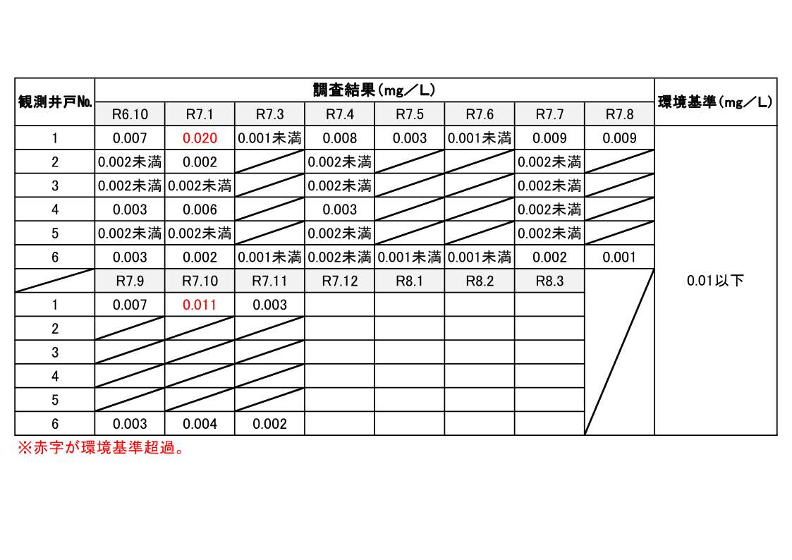 旧妻沼清掃センターの解体工事に併せて敷地内6地点に観測井戸を設置して実施していた地下水質のモニタリングについて、令和7年1月の採水分析の結果、1地点で「