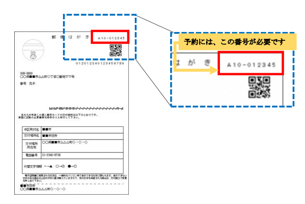 - 予約に際しては、交付通知書のおもて面にあります「○○○-○○○○○○」という番号が、予約の際に必要になります。「交付通知書」をお手元にご準備ください。