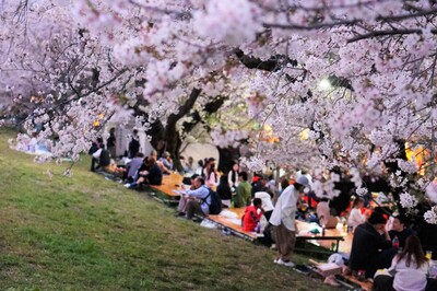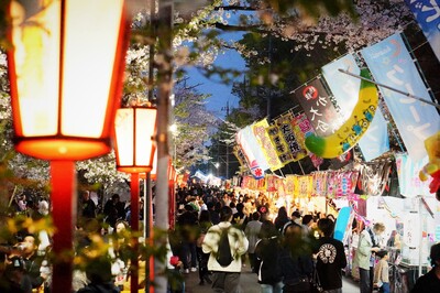 さくら祭期間中は、露店の出店のほか、ぼんぼりの設置とライトアップ、竹あかりフォトスポットの設置、熱気球搭乗体験(指定日のみ)など、熊谷市観光協会による様々な取組も行われました。