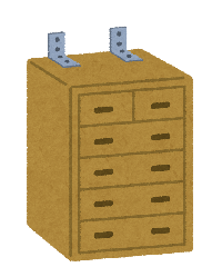 みなさんも、家具への転倒防止金具の取り付けや、「落ちてこない、倒れてこない、移動してこない」場所の確認をしておきましょう。