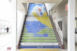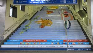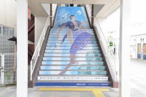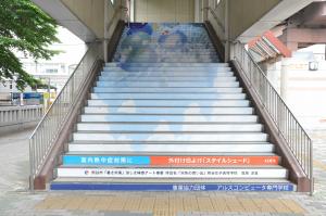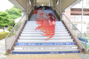 熊谷駅正面口・南口、籠原駅北口・南口の階段の全6箇所に、「涼」「水」「青」をテーマに涼感を演出するアート作品を展示しています。