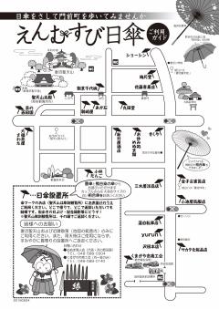 門前町に似合う市の花でもある桜をあしらった番傘140本、伝統的手工芸品に指定されている熊谷染の日傘60本を用意し、聖天山、無料休憩所、商店街など約22か所に設置します。訪れた観光客が無料で使用でき、協力店舗のどこの傘立てにも返すことができるので、涼みながら聖天山の周辺商店街を巡ることができます。