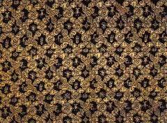 濃い藍色の布地に紅色で鳥や雲の模様を織ったものであり、時代を経て紅色は褐色に変化しましたが、味わい深い風合となっています。なお、荻生徂徠(おぎうそらい)の『度量衡考(どりょうこうこう)』にも紹介されるなど、古くから多くの関心を集めています。