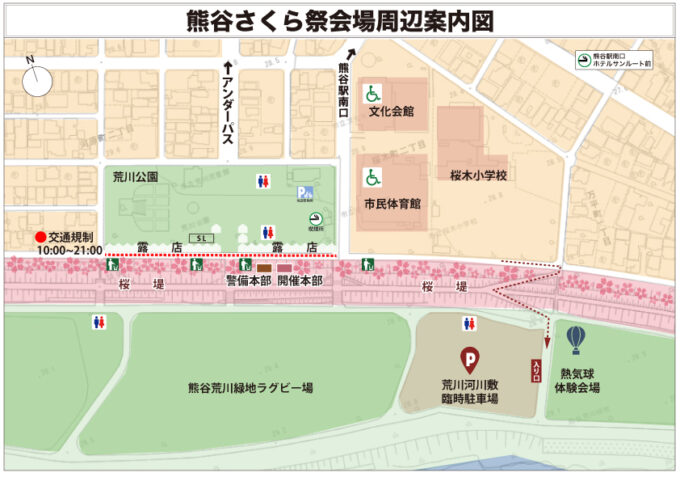 熊谷さくら祭の期間、臨時でバス駐車場を設けています。