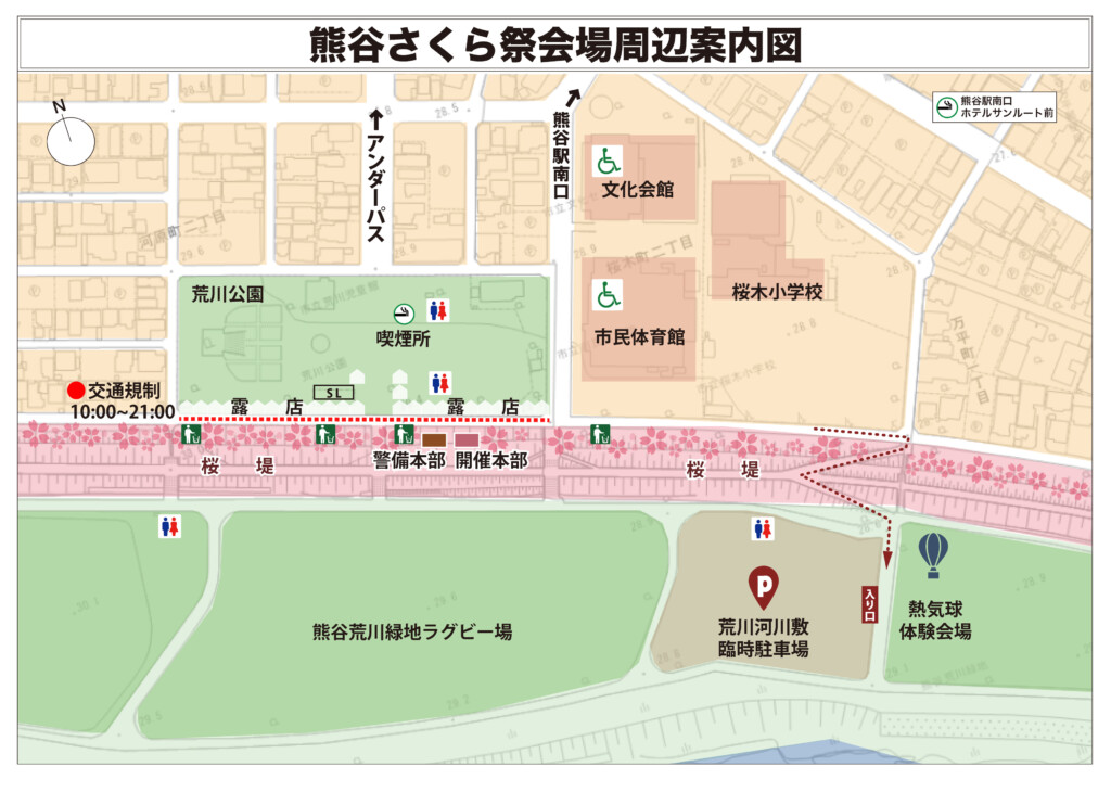 熊谷さくら祭の期間、臨時でバス駐車場を設けております。