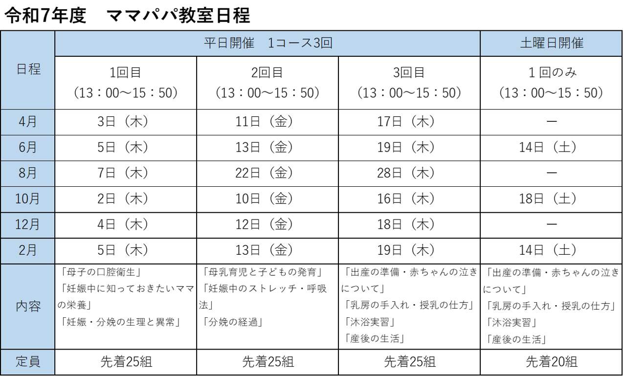 初めて赤ちゃんを迎える妊婦とそのパートナーを対象に実施しています。