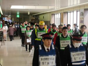 平成30年2月21日、地震発生を想定した帰宅困難者対策訓練を実施しました(会場:熊谷駅周辺から桜木小学校まで)