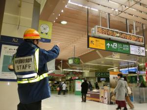 - マイクでのアナウンスの他、構内放送、駅デジタルサイネージ、ツイッター、掲示板(ホ