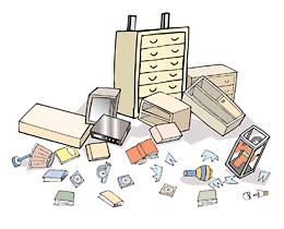 こえて居間に行ったら、2段重ねの和ダンスの上だけ、2段目がテーブルを越えて、2mぐらい吹っ飛んでいました。もうテレビは倒れる、人形ケースは割れる、本棚は倒れるで、足の踏み場もないほどでした。
