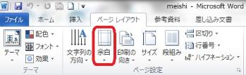印刷がずれてしまう場合はツールバー「ページレイアウト」、「ページ設定」の余白設定を変更してください。