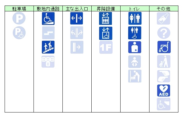 なお、表の中で、ピクトグラムの色が濃く表示されている場合は「設置あり」で、薄く表示されている場合は「設置なし」を意味しています。